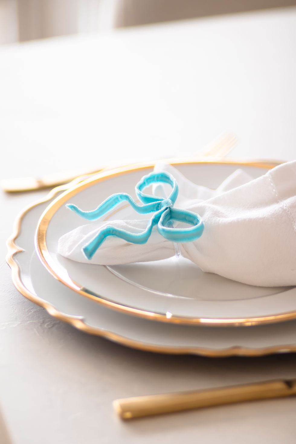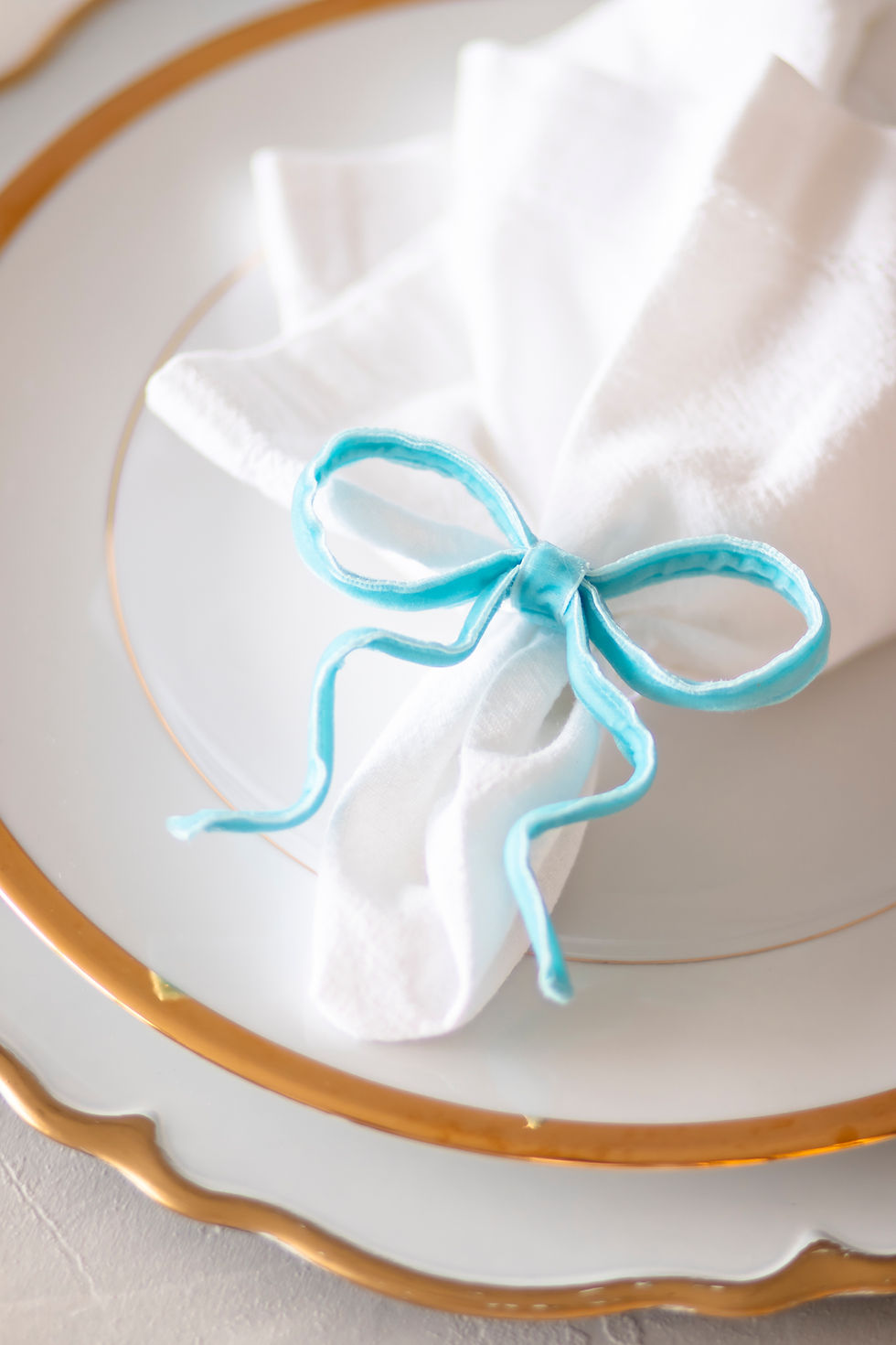 Azul Bebê - Porta Guardanapo Laço Veludo